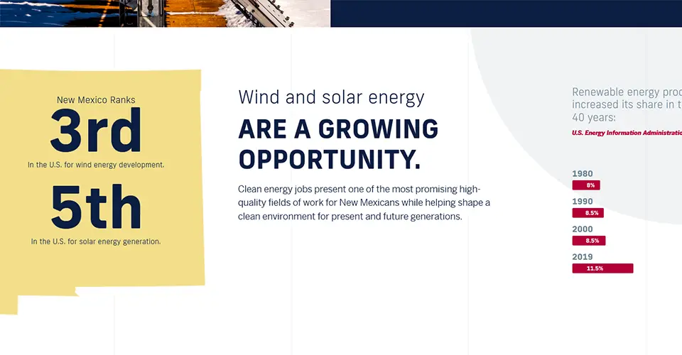 The Power4NM website uses interwoven video and two-tone imagery to complement the message of New Mexico's transition to a sustainable economy.